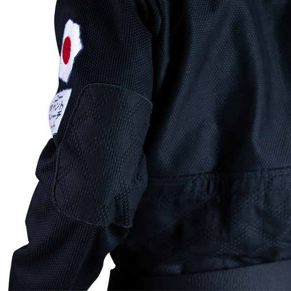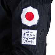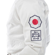 • Left arm: Kodokan Judo emblem and "You Can't Teach Heart. in Japanese embroidery